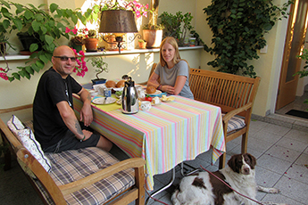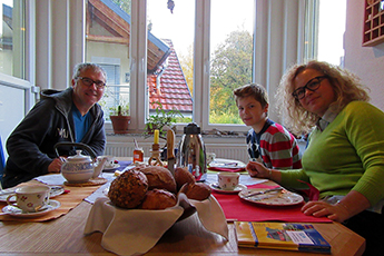 Die Sprachpension gibt es erst seit gut zwei Jahren, sie kann noch nicht mit langjährigen Stammgästen aufwarten. Doch die ersten sind schon wiedergekommen: Ein russisches Paar, das aus beruflichen Gründen in der Schweiz lebt, kam schon nach wenigen Wochen für ein zweites Wochenende und brachte noch Freunde aus Russland mit. Zwei begeisterte Fahrradfahrer aus Belgien hatten das Glück, im Juni hier den kurzen diesjährigen Hochsommer zu erleben. Den ganzen Tag waren sie auf ihren "Fietsen" unterwegs, um dann abends auf dem Balkon die bodenständige Küche der Sprachpension zu genießen. Offensichtlich hat es ihnen geschmeckt, denn Ende September waren sie wieder da und brachten ein zweites, befreundetes Paar mit.