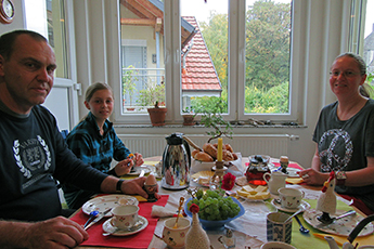 Mit meinen Sprachkursgästen habe ich alle Mahlzeiten geteilt. Doch auch mit einigen meiner Urlaubsgäste gab es gemeinsame Frühstücksrunden, für ein paar habe ich auch Abendessen gekocht und gemeinsam mit ihnen in unterhaltsamer Runde getafelt. Ein Pärchen aus Amerika hat mich aufs Weinfest nach Freiburg mitgenommen, mit Sprachschülern war ich unter anderem auf der Hochkönigsburg im Elsass, im Automobilmuseum in Mulhouse und bei einer Führung mit Weinprobe und einer Rotweinnacht mit 4-Gänge-Menü im Oberrotweiler Winzerkeller. Mit Gästen aus Belgien habe ich Kochrezepte diskutiert, mit Holländern das Endspiel der Fußball-WM im Fernsehen angeschaut. Manche haben mit mir über Gott und die Welt philosophiert, andere Wissenswertes über Blumenpflege mit mir ausgetauscht. Mit einigen habe ich eine Deutschunterricht-Schnupperstunde gehalten, anderen über die Besonderheiten des Kaiserstuhls erzählt, oder Tipps für Ausflüge gegeben.